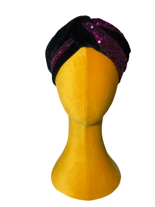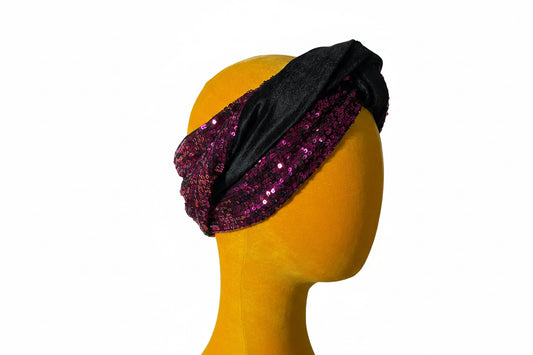 Black/Magenta Sequin Head wrap