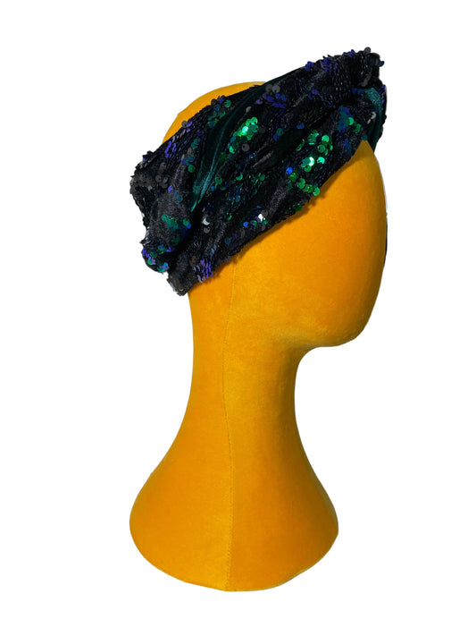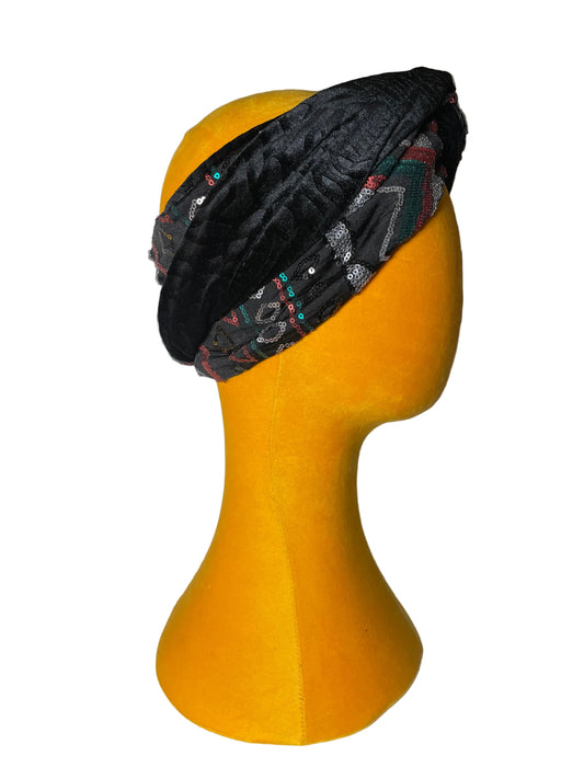 Sold outAztec Sequin and Black Velvet Turban