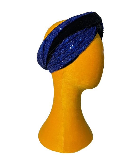 Black/Cobalt Sequin Head Wrap