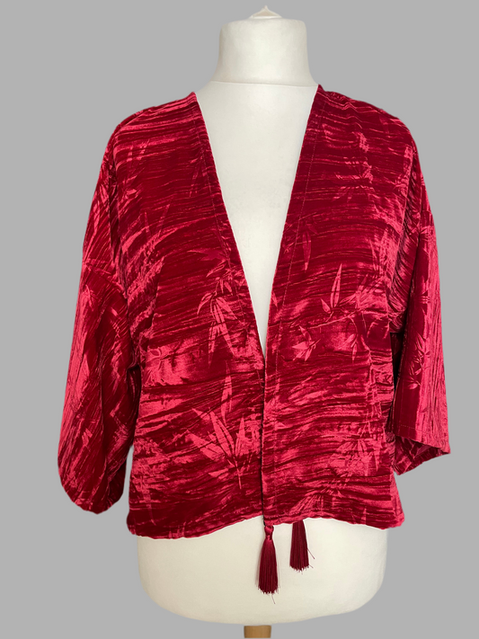 Red Cropped Kimono Jacket